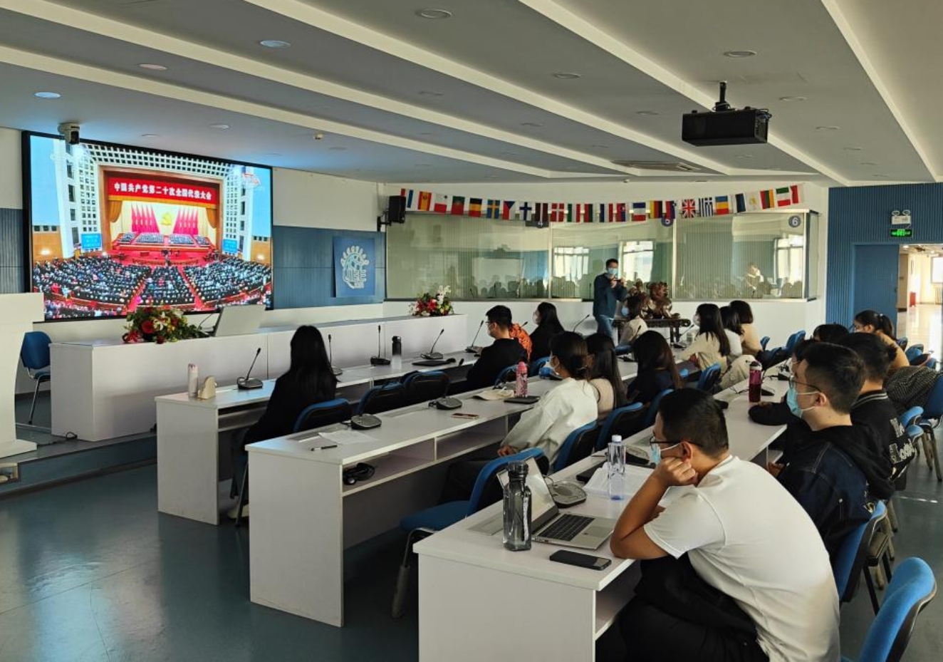 2022年10月16日上午10时,中国共产党第二十次全国代表大会在北京人民大会堂隆重开幕。娱乐城送彩金 硕博各研究生党支部组织全体党员在诚信楼1412会议室、宿舍和家中收看大会盛况,第一时间学习习近平总书记在大会的报告。娱乐城送彩金 党委副书记刘冰老师与党员代表在诚信楼1412会议室一起收看学习。