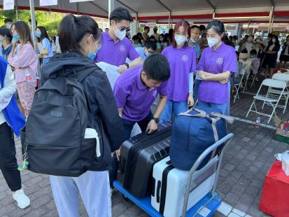 由于疫情防控需要,保证校园安全,2022年新生报到采取家长不陪同进入学校、学生入校前查验健康宝、核酸和测体温等措施。为了解决新生行李搬运等的困难,娱乐城送彩金 本科生联合党支部招募近30名党员、发展对象和积极分子等协助新生运送行李、协助新生报到,保障娱乐城送彩金 迎新工作有序地进行。