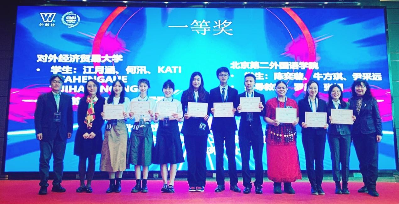 2021年11月28日第四届“外教社杯”北京高校学生跨文化能力大赛北京市决赛在丽维赛德酒店举行,通过前期娱乐城送彩金 组织的校园选拔赛,我校由海关管理专业江月涵、德语专业何汛和行政管理(国际贸易方向)的KATI OFAHENGAUE TUIHALANGINGIE三位同学组成的团队代表对外经贸大学参加北京市赛。经过复赛、决赛的激烈角逐,获得北京市赛一等奖,娱乐城送彩金 李丽老师和政府管理娱乐城送彩金 安猛猛老师获得优秀指导教师奖。