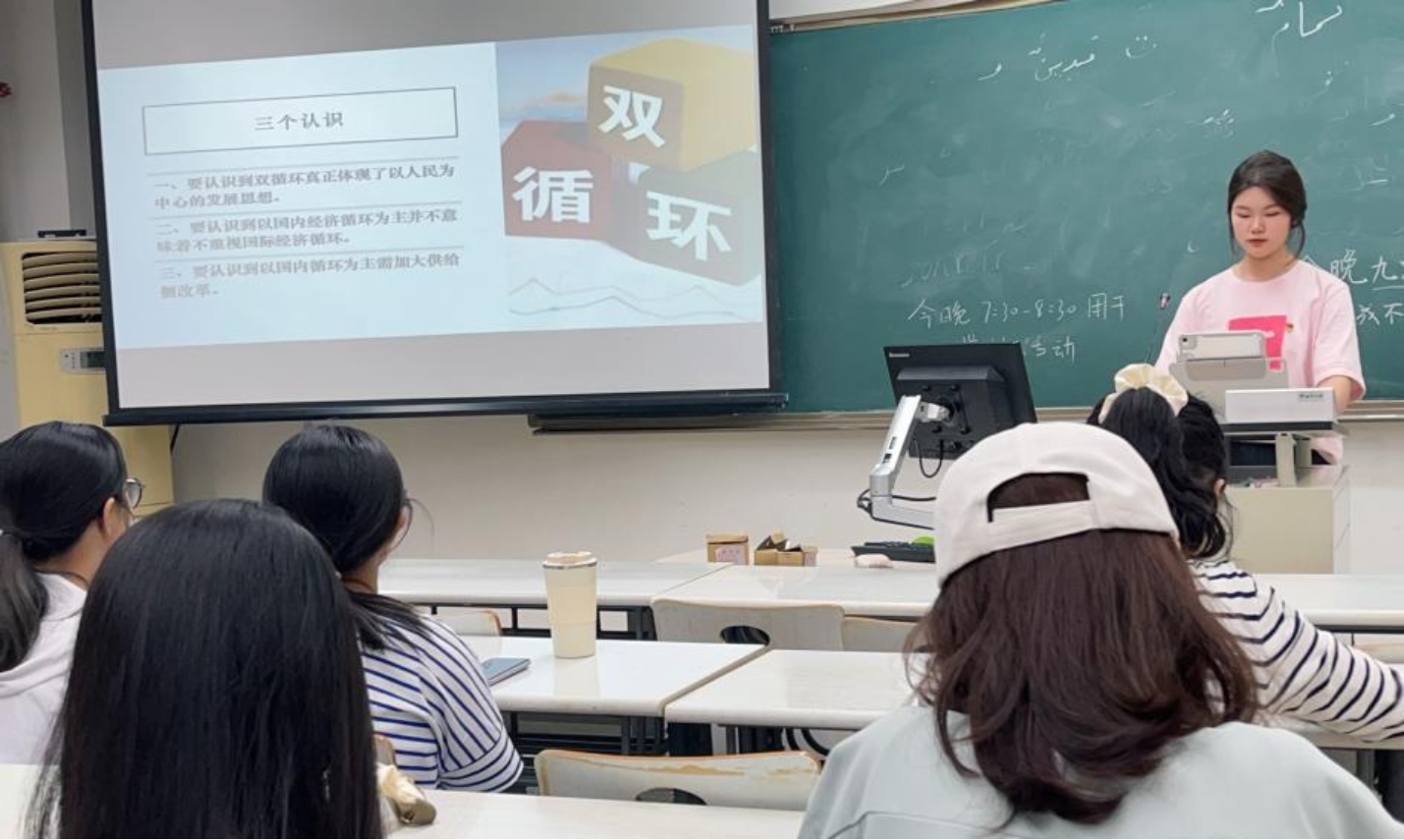 通过对《习近平新时代中国特色社会主义思想学习纲要》、《双循环论纲》这两本理论书籍的共同学习,2301班同学能够更多地了解国内国际市场,有意识地培养自身创新能力,提高综合素质,能够更加坚定自信,将自己的个人发展和国家的发展相结合,为社会主义现代化建设做出积极贡献。
