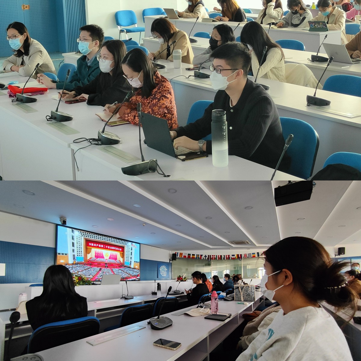 2022年10月16日上午10时,中国共产党第二十次全国代表大会在北京人民大会堂隆重开幕。娱乐城送彩金 硕博各研究生党支部组织全体党员在诚信楼1412会议室、宿舍和家中收看大会盛况,第一时间学习习近平总书记在大会的报告。娱乐城送彩金 党委副书记刘冰老师与党员代表在诚信楼1412会议室一起收看学习。