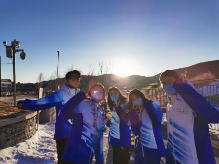 徐张弛、戴泽超、黄思予3位同学在延庆赛区担任志愿者,服务于延庆赛区的高铁团队以及延庆停保中心场站,主要负责为媒体记者以及随队官员提供语言服务,填写用车数据,进行翻译等工作。