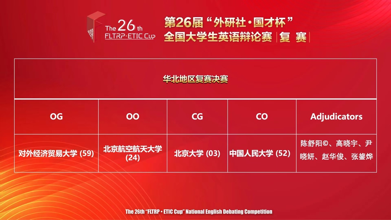 (图:第26届“外研社·国才杯”全国大学生英语辩论赛华北赛区复赛季军公布)