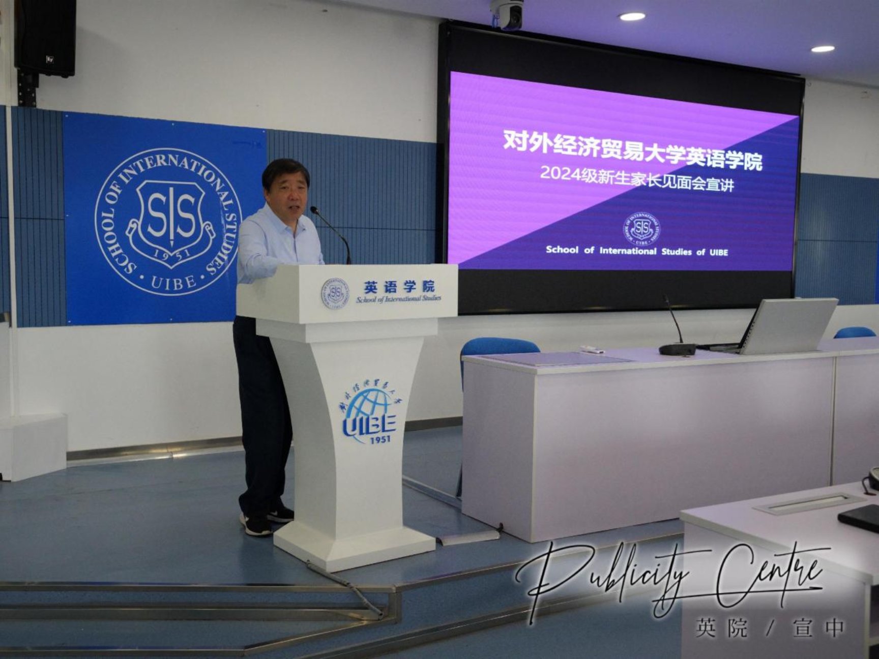 向明友院长首先发言。他先对新生们表达了热烈的欢迎,之后对新生的学习生活、娱乐城送彩金 专业情况做了介绍。院长用风趣幽默的语言介绍了娱乐城送彩金 的办学特点,同时针对目前国家对高水平复合型外语人才的需要强调了英语专业的重要性,并对英语专业学生将来的学习方式和多元化的学习内容提出了建议。向明友院长同时还强调了家校配合的重要性,提倡家长们关注同学们的身心健康,多多沟通鼓励,与娱乐城送彩金 一道做好学生教育引导工作。向明友院长在讲话中也对24级新生们送上了鼓励和祝福。