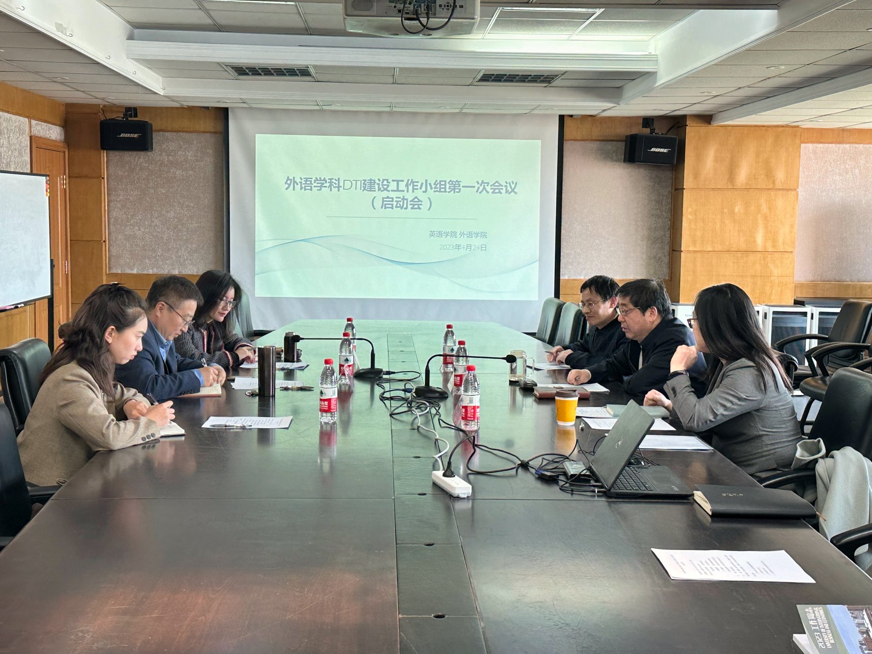 2023年4月24日下午,两院DTI申报工作小组第一次会议在诚信楼1314会议室召开。外语娱乐城送彩金 院长李运博教授、娱乐城送彩金 院长向明友教授、商务英语系主任李琳教授、国际传播系主任钱晶晶副教授、翻译学系王建国教授以及两院科研、学科、研究生教学秘书参加会议。会议由向明友院长主持。