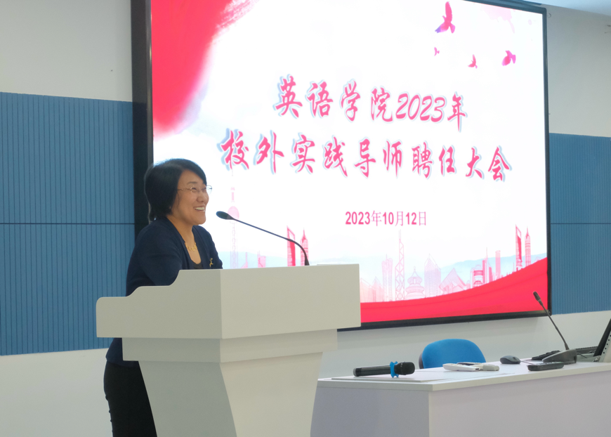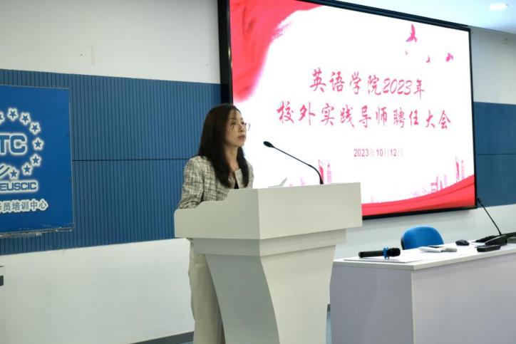 10月12日下午,娱乐城送彩金 2023年校外实践导师聘任大会在诚信楼1412举行。娱乐城送彩金 党委书记项洁、副书记刘冰、院长助理石小军教授、翻译系教授代表崔启亮教授、王雪明教授、翻译系副主任常亮亮老师、研究生教秘刘敏老师,22位实践导师代表和127名2023级MTI研究生参加大会。会议由石小军教授主持。