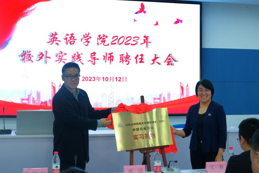 随后,项洁书记与中国日报网人力资源部总监邢熙翔先生共同为MTI校外实践基地揭牌。中国日报网是中国日报社旗下企业,本次实践基地的揭牌为娱乐城送彩金 研究生进行多领域、多方向实践提供了又一坚实的保障。