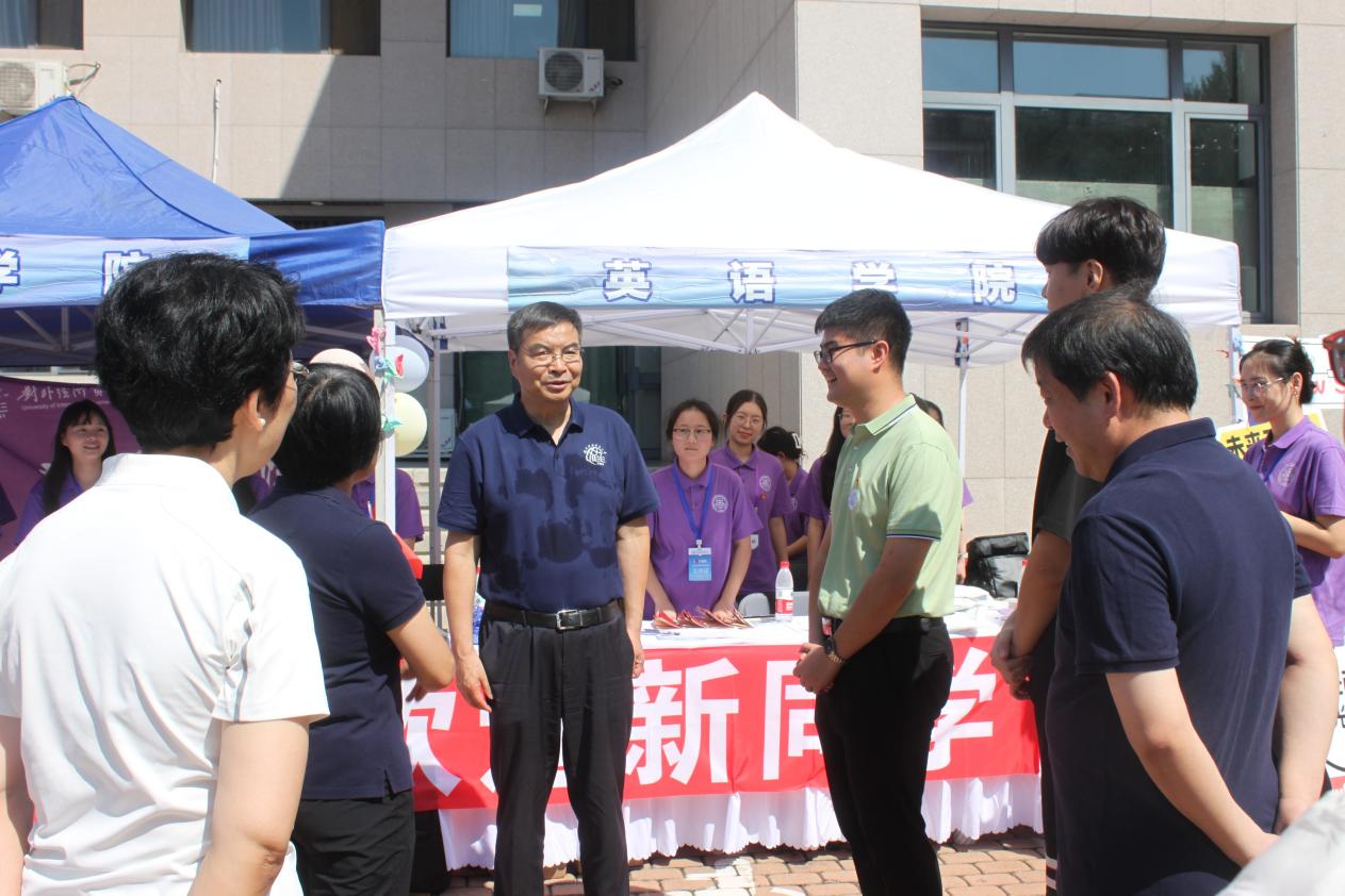 上午十一时许,校长赵忠秀、副校长兼党委副书记文君、副校长黄薇一行在相关职能部门负责人的陪同下,莅临娱乐城送彩金 迎新工作现场,了解娱乐城送彩金 今年的招生情况和新生报到情况,慰问了迎新的工作人员,与新生亲切交流,充分肯定了娱乐城送彩金 的迎新工作,并和迎新工作人员、新生代表一起合影留念。