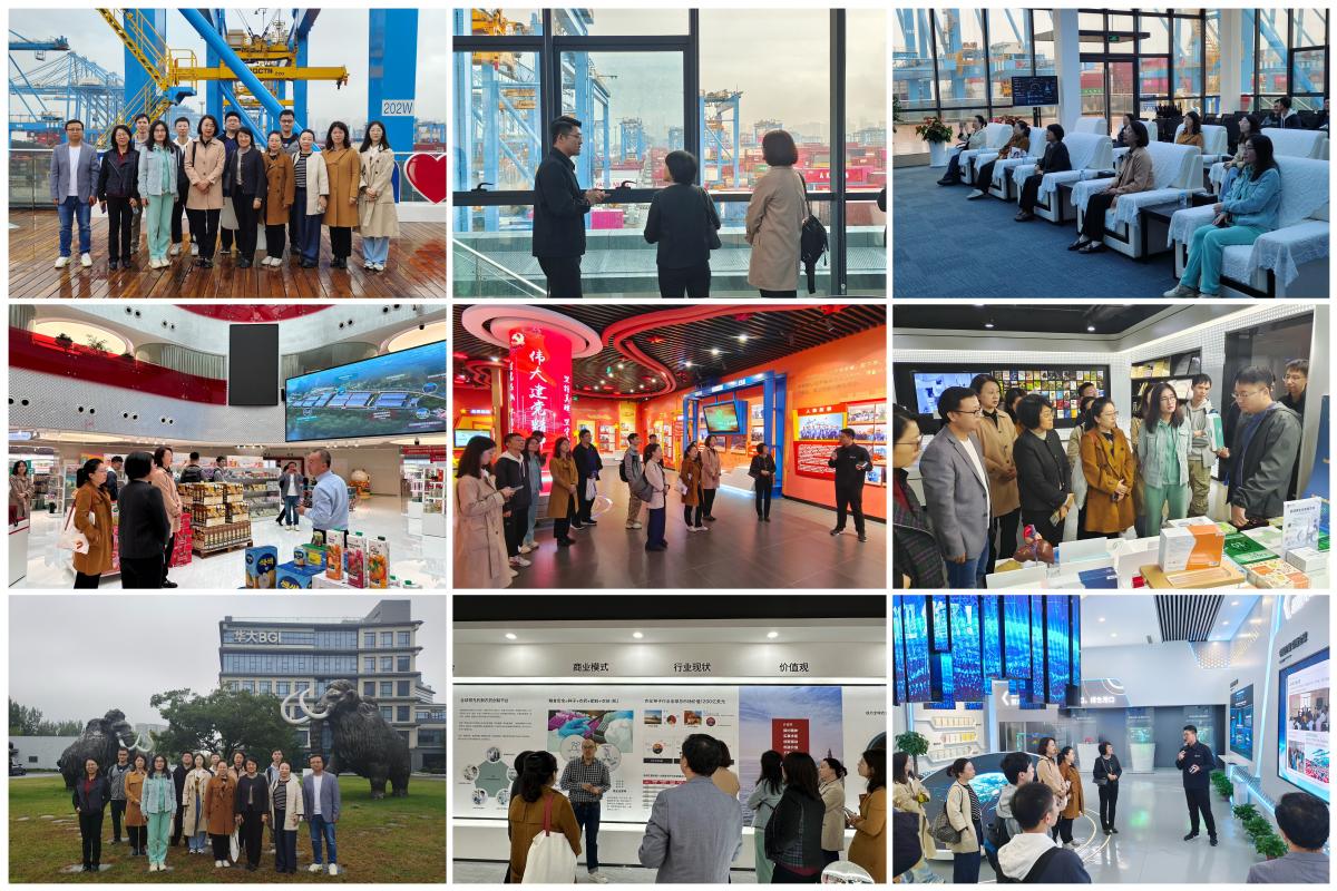 为深入学习贯彻党的二十届三中全会精神,探索发挥外语学科专业优势服务地方高水平对外开放的有效路径,2024年10月17日至18日,娱乐城送彩金 党委书记项洁、副院长陈功、商务英语系主任李琳、语言文学与国际传播党支部书记冯悦、国际传播系副主任张淑玲、社会服务与培训部负责人王公元、职业发展中心负责人段菲、研究生教学秘书刘敏一行8人赴我校青岛研究院、青岛自贸片区及区内企业和上合组织经贸娱乐城送彩金 开展调研活动,参观调研了青岛港全自动化集装箱码头、中日韩消费专区电商体验中心、华大基因研究院、清原作物科学公司,并与我校青岛研究院、青岛自贸区及区内企业和上合经贸娱乐城送彩金 座谈交流。青岛研究院副院长韩亮、教师王雪飞全程陪同调研。