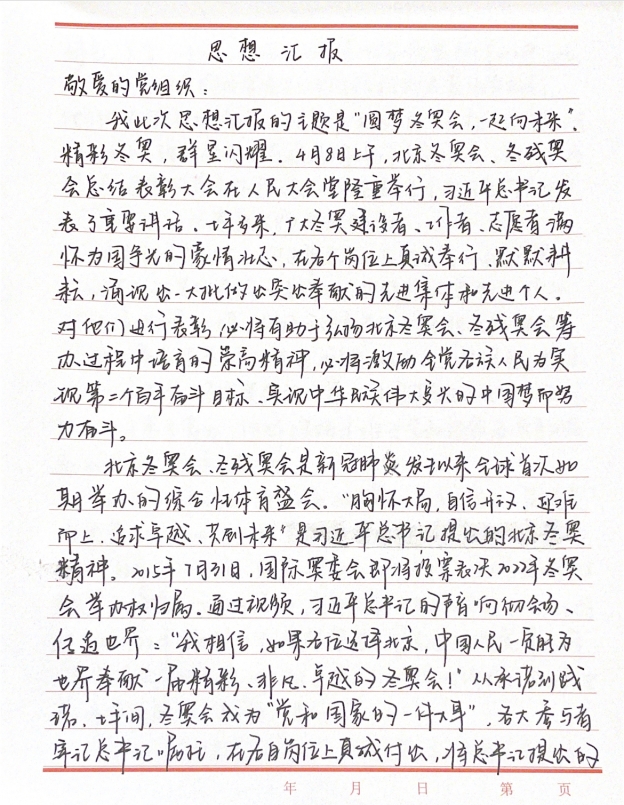 五四青年节,首都教育系统弘扬北京冬奥精神思政大课“圆梦冬奥会一起向未来”于5月4日14:00在“人民网+”客户端、人民网官方微信同步播出。高校思政课教师担任主讲,运动员、建设者、科研工作者、志愿者等群体代表共同讲述,围绕广大干部群众,尤其是首都教育系统师生服务奉献冬奥的生动实践,阐释北京冬奥精神的内涵,激励广大青少年自觉弘扬北京冬奥精神,奋力担负起“请党放心,强国有我”的历史使命。 为深入学习贯彻习近平总书记在北京冬奥会、冬残奥会总结表彰大会上的重要讲话精神和在中国人民大学考察时的重要讲话精神,进一步弘扬“北京冬奥精神”,娱乐城送彩金 本科生党支部组织党员和入党积极分子通过线上学习讨论和提交思想汇报等方式,学习“圆梦冬奥会一起向未来”思政大课。